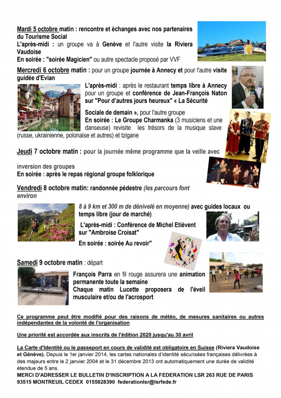 SEJOURS : INSCRIPTIONS ET PROGRAMMES