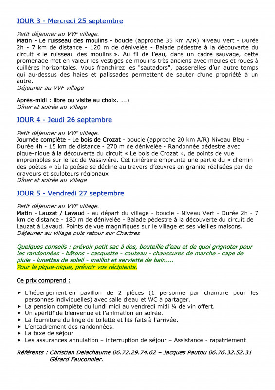 Séjour randonnée 5jours/4 nuits 2024