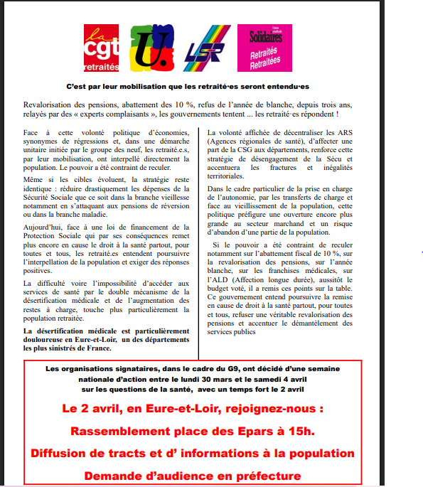- 02-04 Rassemblement intersyndicale des retraité.e.s