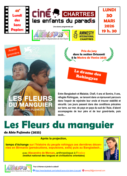Film "Les fleurs du manguier" de Akio Fujimoto suivi d'un temps d'échange sur l'histoire du peiple Rohingya.