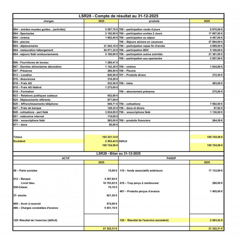 Résultat : 2.504 € d'excédent contre 1.470 € en 2024