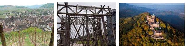 Arrivée à Colmar, préfecture du Haut-Rhin que Georges Duhamel qualifié de plus belle ville du monde pour une visite pédestre. Direction Riquewihr, perle du vignoble, déjeuner au restaurant, visite pédestre du vieux bourg alsacien avec ses riches maisons fleuries et ses fontaines, à l’abri des remparts et des fossés datant de 1291 à 1500. Ensuite, direction de Ribeauvillé, cité des Seigneurs de Ribeaupierre, dont les 3 châteaux forts dominent encore la ville sur les collines environnantes. Au retour, visite d’une cave suivie d’une dégustation.
