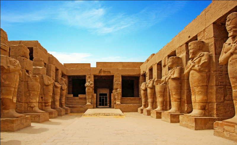 Elevé à la gloire du dieu Amon et dont tous les vestiges ne Sont pas tous dégagés, il est relié au temple de Louxor par une allée de Sphinx. Huit siècles se sont écoulés entre le début de la construction de cet ensemble et son achèvement. On y remarque le grand temple d'Amon, la cour ornée de portiques, les temples de Ramsès III et