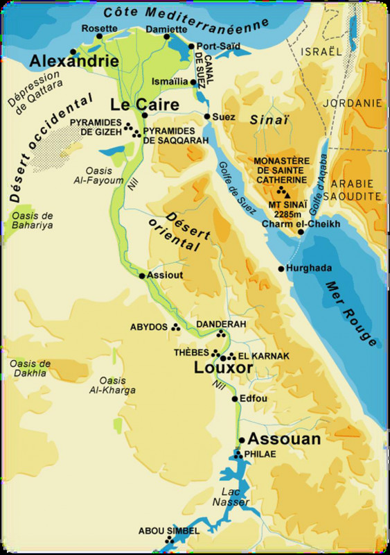 Climat : Le climat égyptien est méditerranéen sur la côte d'Alexandrie, semi-désertique à la hauteur du Caire, et complètement désertique dans le Sud. Prévoir des lainages et/ou coupevent pour les soirées à mi-saison.
